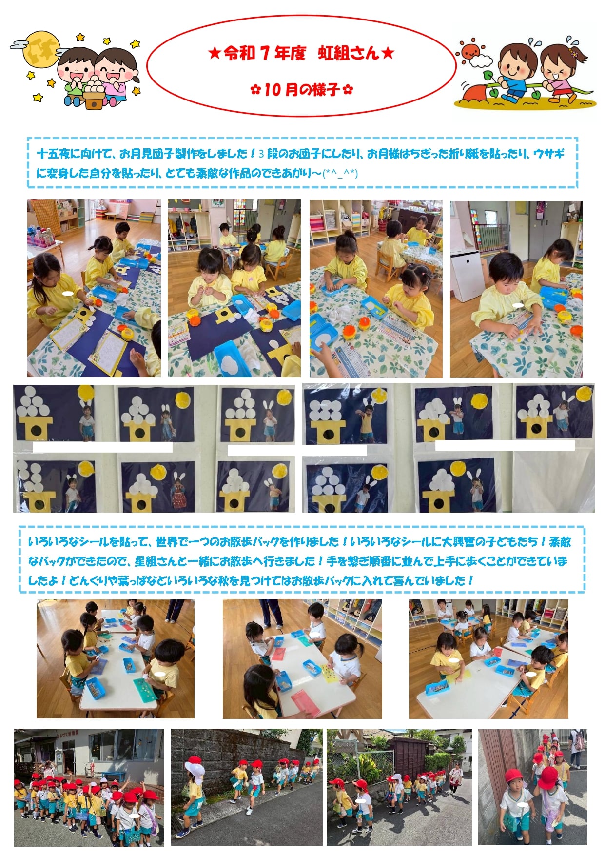 秋らしい製作や活動に取り組む虹組さん!運動会の練習も少しずつ無理のないように行い、楽しく活動できています(*^-^*)