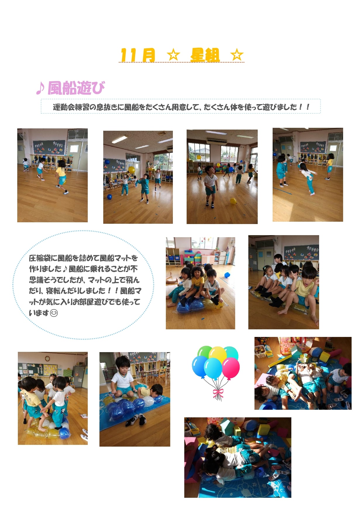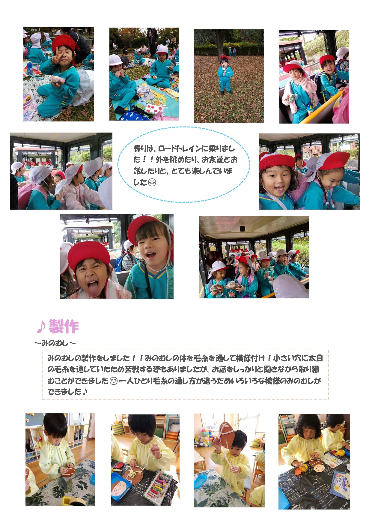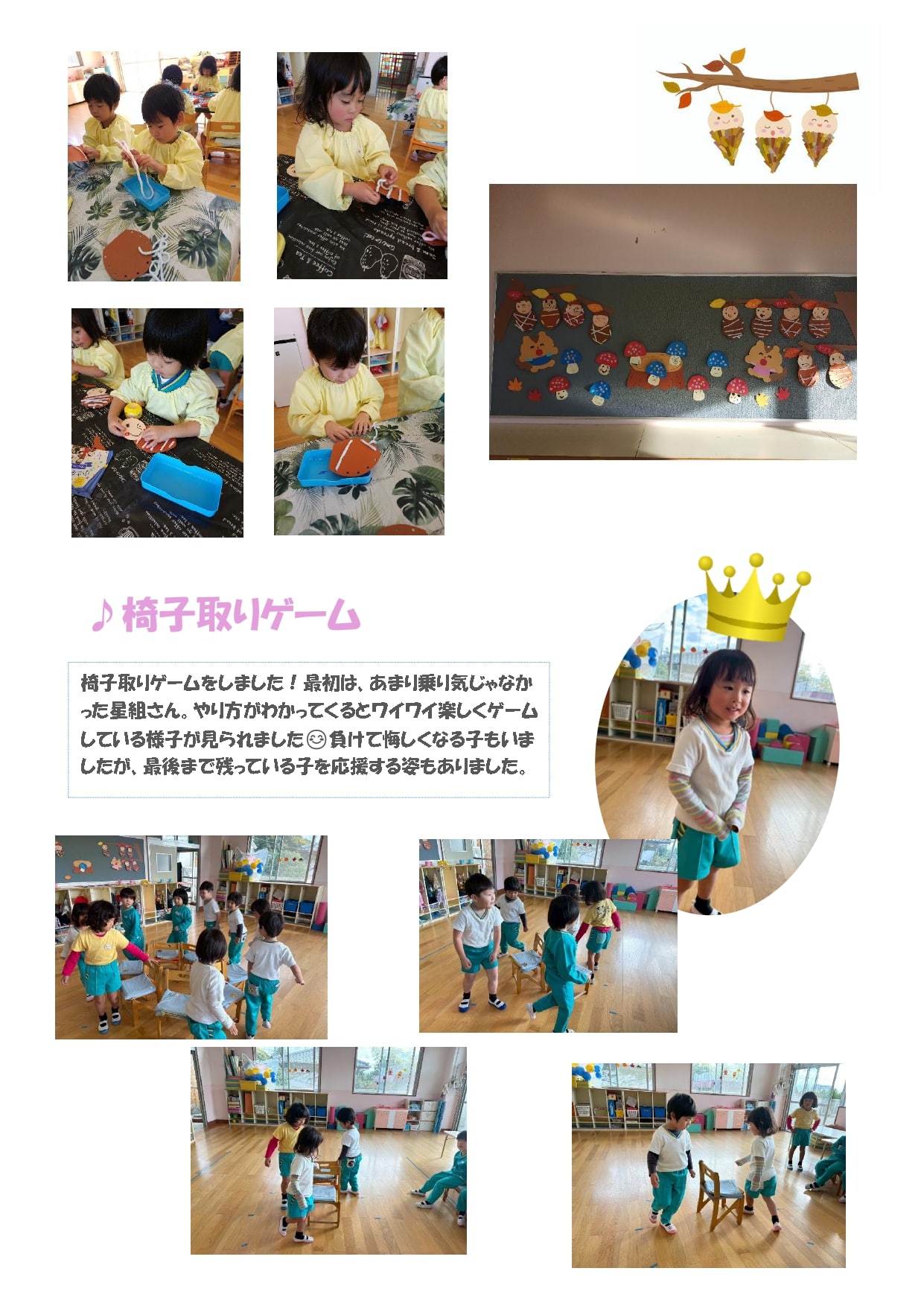 11月も運動会や遠足と行事がたくさんあった中、製作や集団遊びなどをして楽しみました♪
