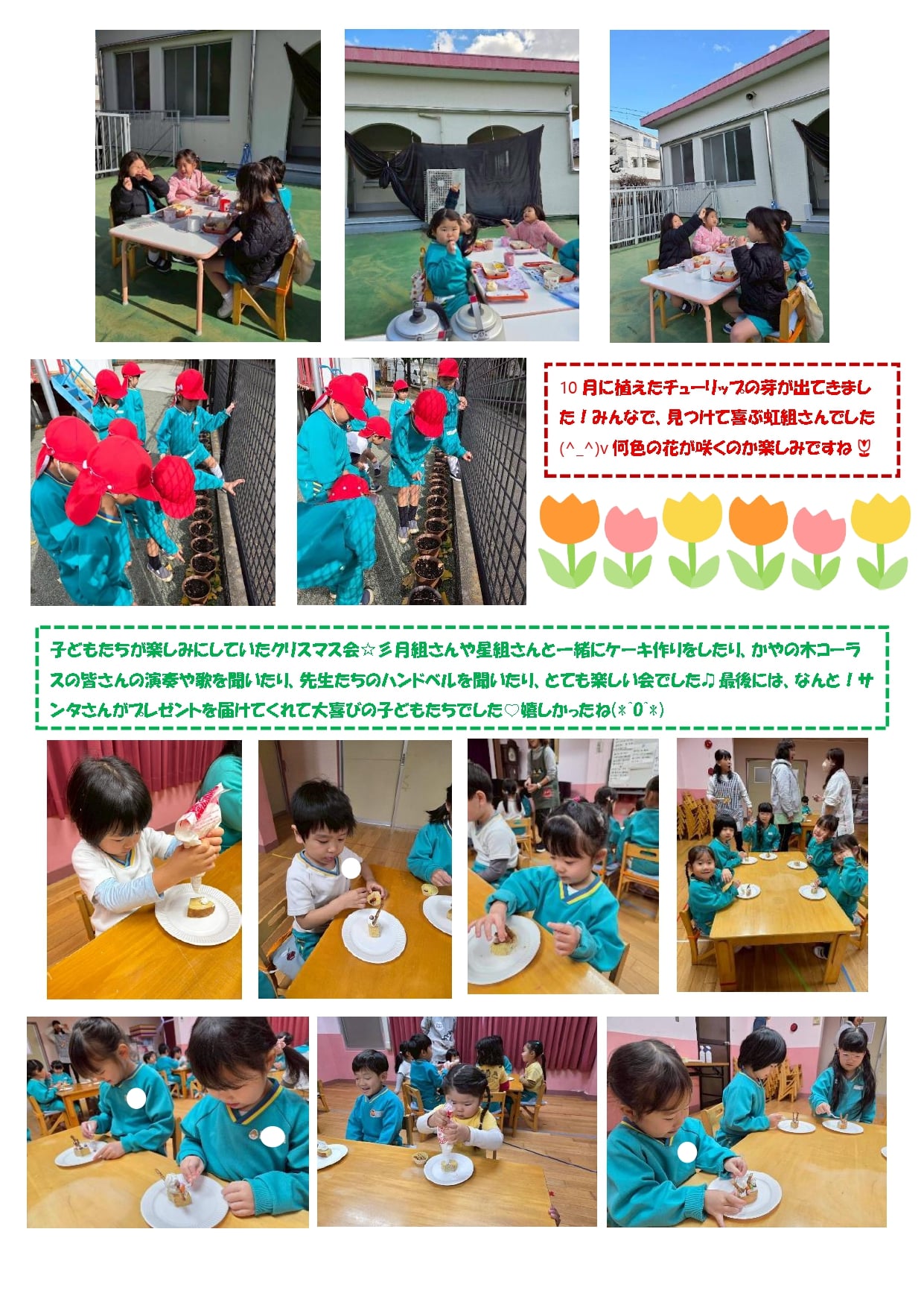 12月も楽しいことがたくさんありました!特にクリスマスに向けての製作や行事が目白押し!!楽しかったね(*´▽`*)