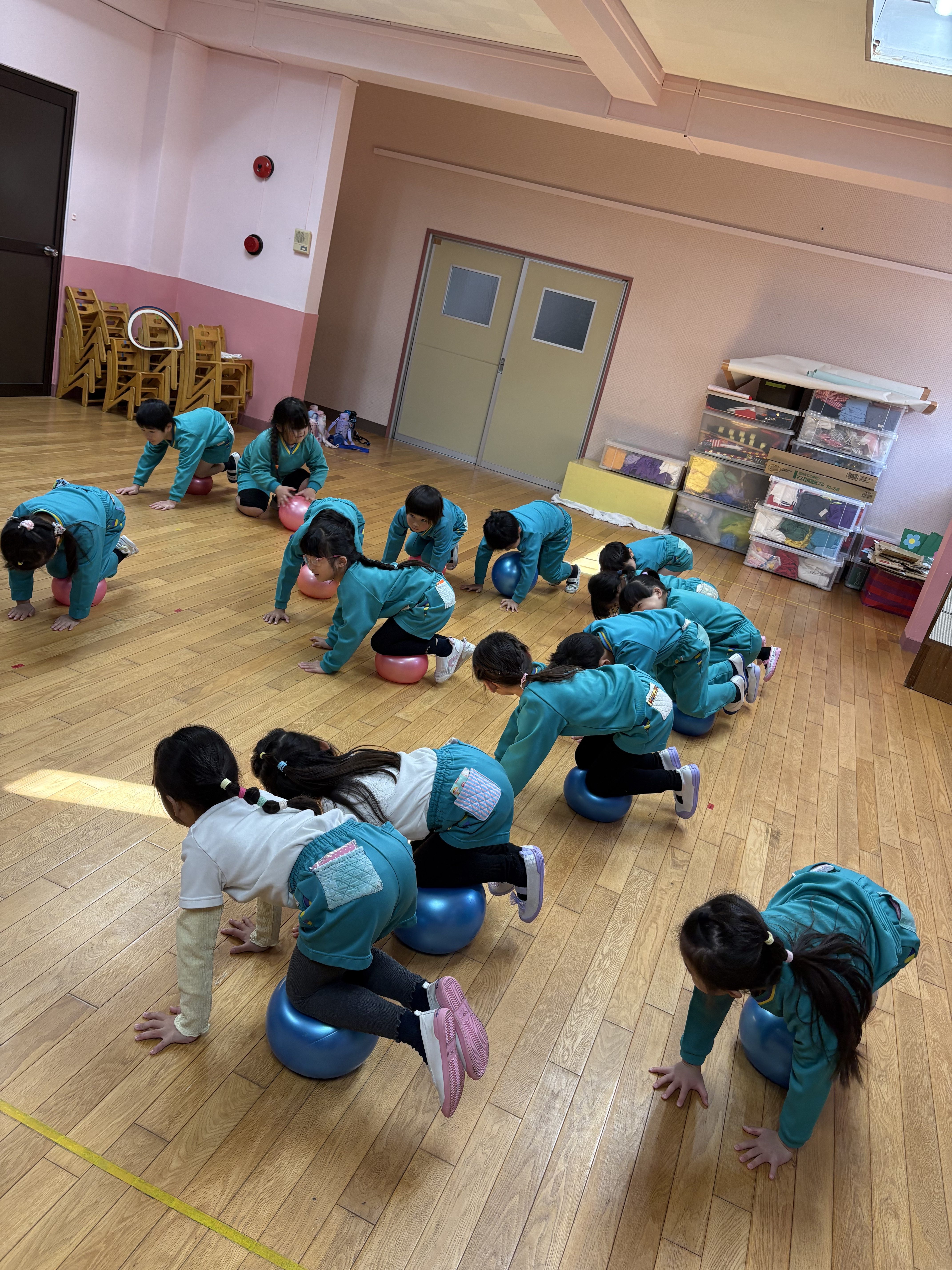 月組になって最初の体操!久しぶりで、子どもたちも楽しんで取り組んでいました!卒園までにいろいろな技ができるよに頑張ろうね!!